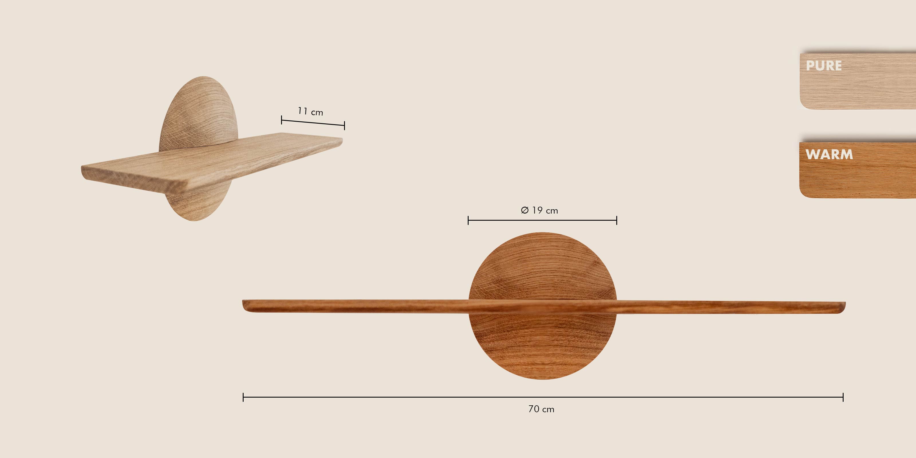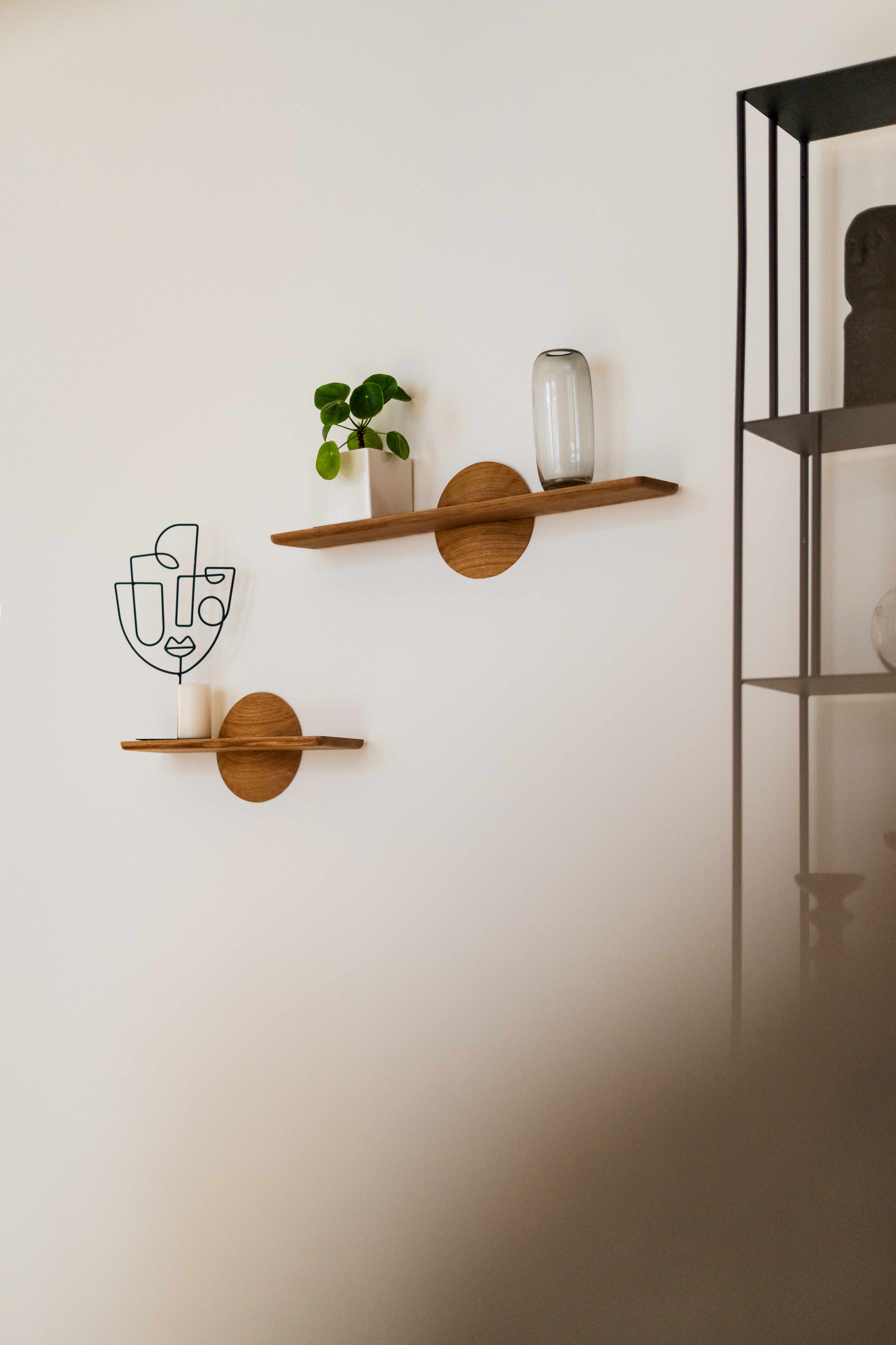 The Nina oak shelf was designed to reinvent the traditional shelf. Its design with its round and spherical wall base brings novelty and elegance to your interior.