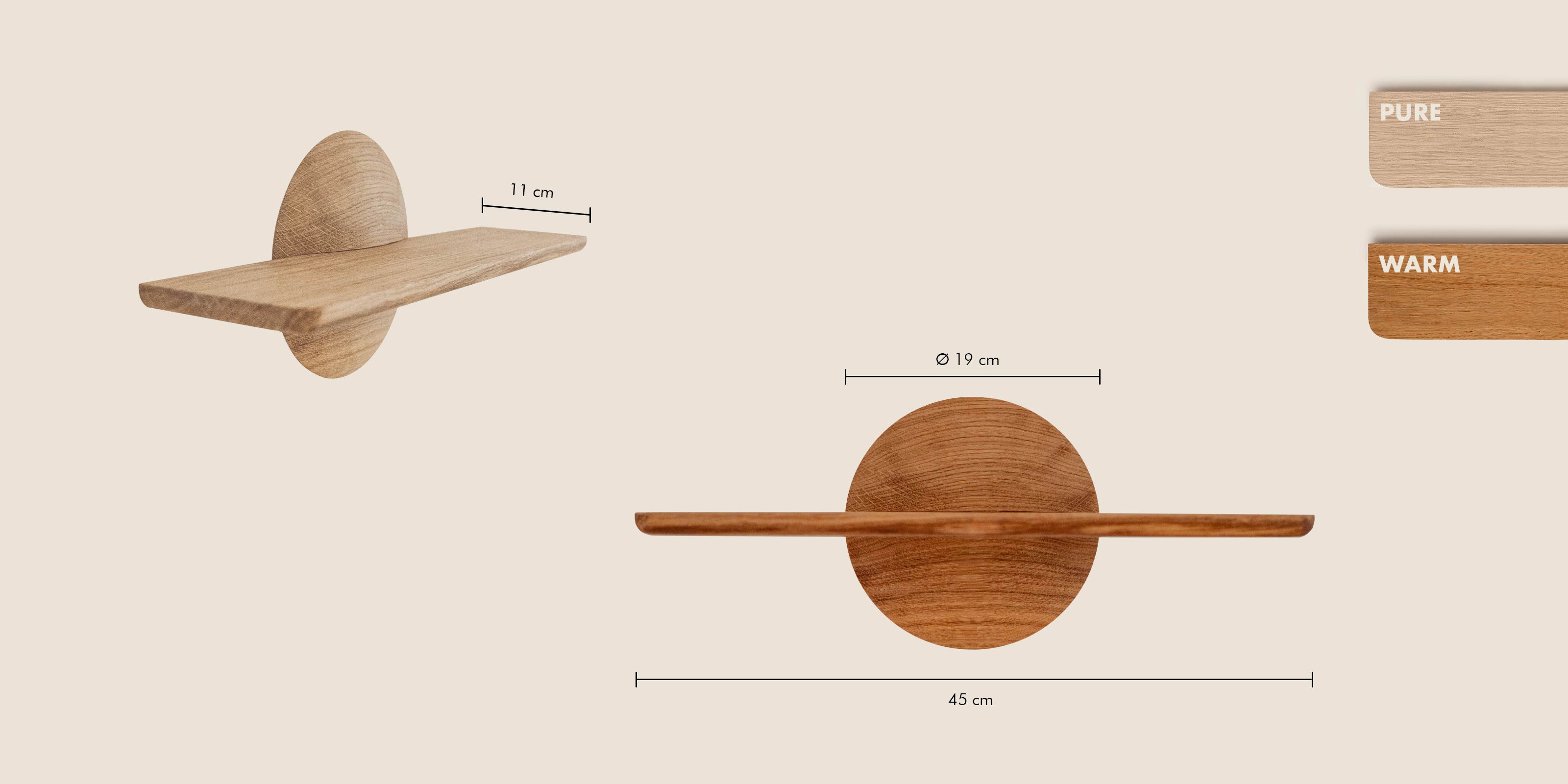 The Nina oak shelf was designed to reinvent the traditional shelf. Its design with its round and spherical wall base brings novelty and elegance to your interior.
